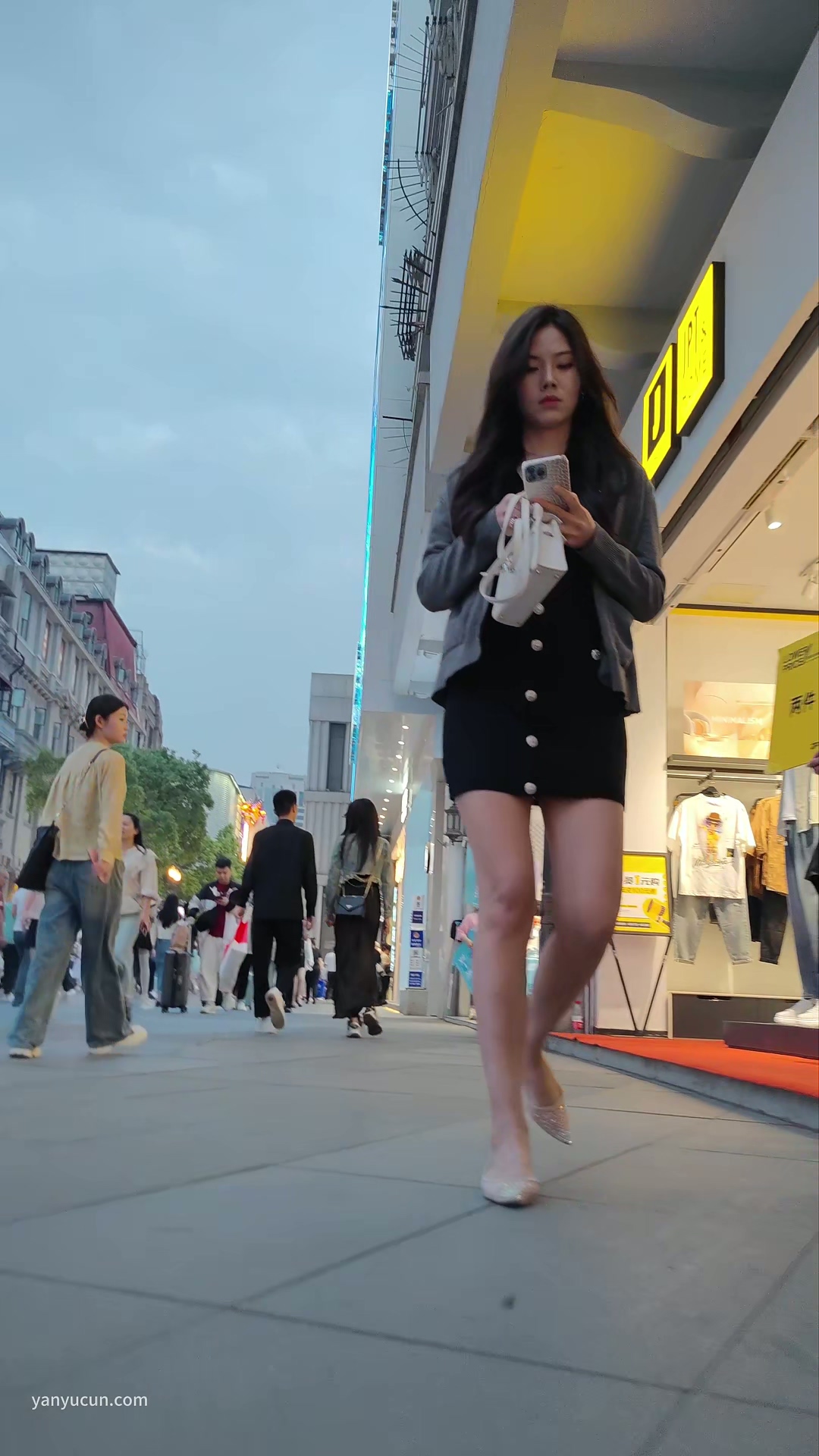 XM343黑色包臀裙极品美女和老公逛街,白色窄内 ...